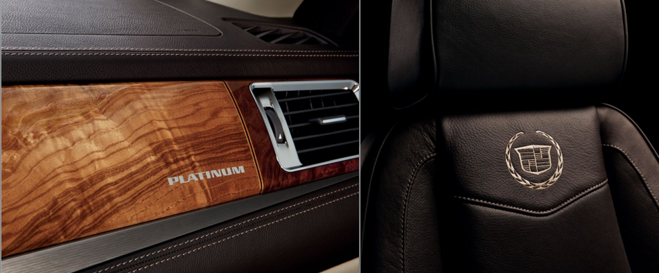PLA имеет сидения из специальной мягкой кожи и многоцветные карты дверей со всякими дополнительными улучшениями. Инструментальная панель и карты дверей другие, обшиты кожей и имеют хромированные вставки-окантовки. Platinum мог иметь и черный салон всё с той же неизменной светлой надписанной доской на панели. Передний бампер, а он у Escalade составляет весь фронт, отличается. На всех не-Platinum есть по две стационарных буксировочных скобы, а у Platinum скоб нет, зато есть решетка специального рисунка перед радитором охлаждения и еще, между ПТФ, поменьше, в том же стиле, еще одна. Дизайн колесных дисков отличается, дизайн приборки отличается. Из технических отличий - штатные LED-фары и подстаканники с подогревом-охлаждением. Со временем появлялись и другие изыски. Есть соответствующий шильд.