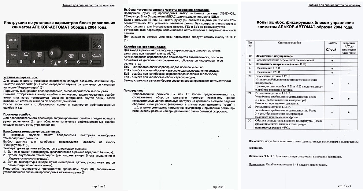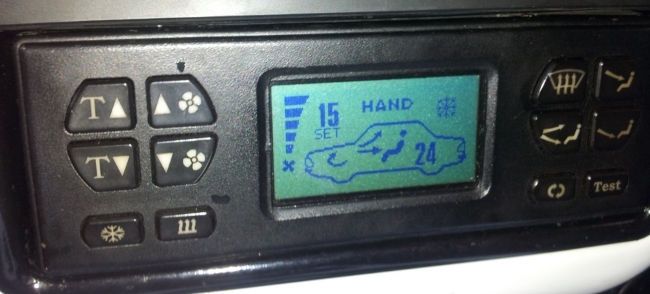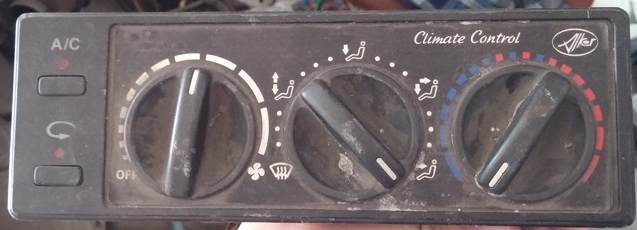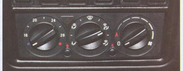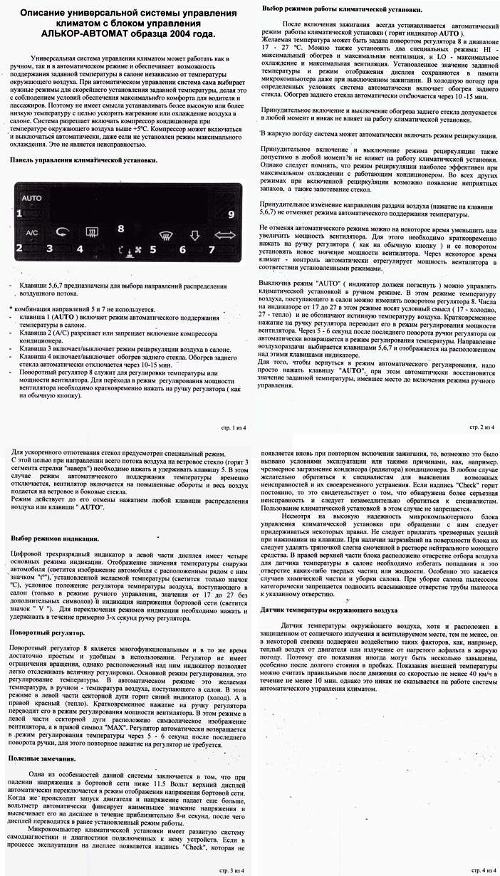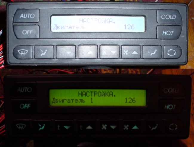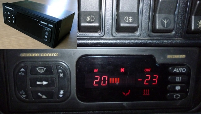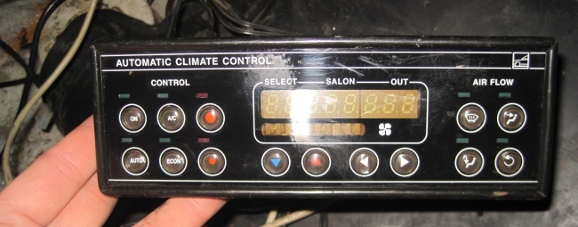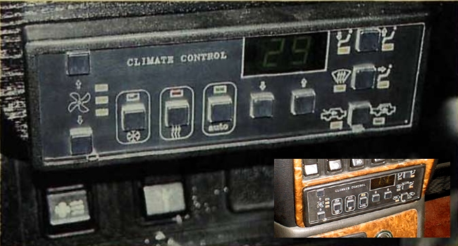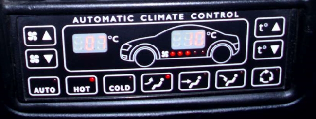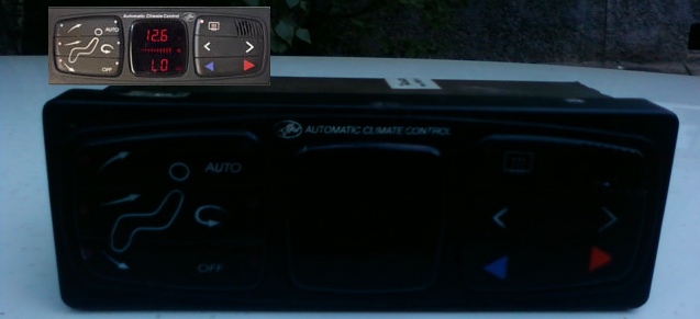 Цитата 2: Управление тремя заслонками кнопочное, причём одна заслонка имеет промежуточное настраиваемое положение. Управление отопителем рассчитано на три положения, так же как и управление кондиционером (имеется экономичный режим). Управление вентилятором - плавное (в ручном режиме - 10 положений, в автоматическом - 50). Автоматический режим на основе входных параметров управляет вентилятором, кондиционером, отопителем и заслонками, т.е. всем спектром оборудования. На дисплее отображается салонная, забортная температура и температура выбранная водителем. Имеется на выбор зелёная или красная подсветка органов управления в сочетании с такими же цветами индикаторов. В базовом варианте прибор оптимизирован и настроен под работу в сборе с кондиционером фирмы "Autoclima" (Италия).