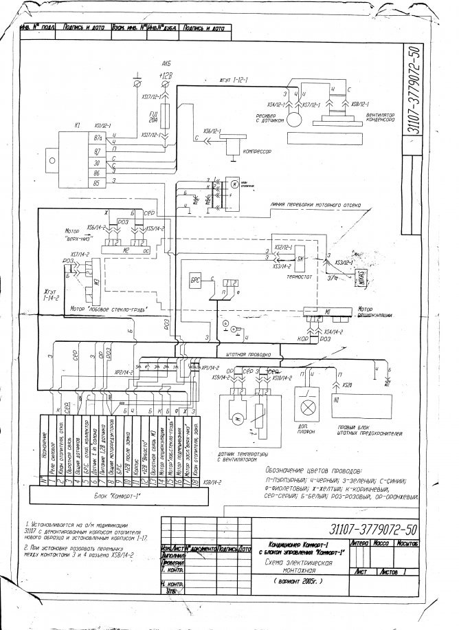 Схема электрическая монтажная Комфорт-1 для корпуса "31107" (MrVeter) - скачать