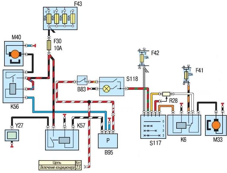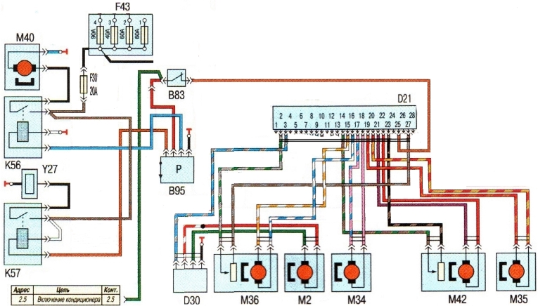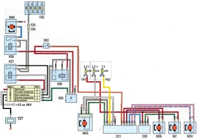 ЭБУ СОАТЭ включает реле компрессора подачей постоянного "+" на пин 40. Выход - "-" с 25-го пина.