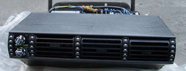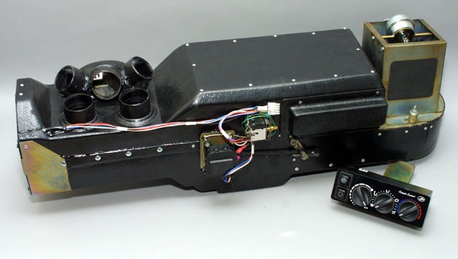 Дальнейшее развитие системы с "одной кнопкой" переключателя выразилось в развитии решения соединения двух корпусов. Левая половина (блок с заслонками и вентилятором отопителя) была стандартна для "Волг". Правая половина - "универсальный" испаритель со своим собственным корпусом (видимо от универсального комплекта "SANDEN"), выход и вход которого для вывода под капот удлиняли короткими отрезками "кондиционерных" шлангов.