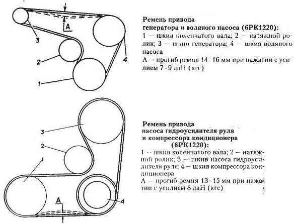 6. Ремень привода агрегатов. В заводском исполнении: ЗМЗ-406 - два ремня 6РК1220, Chrysler - один 6РК1930. На ЗМЗ-402 и ГАЗ-560 штатно компрессоров не устанавливалось.