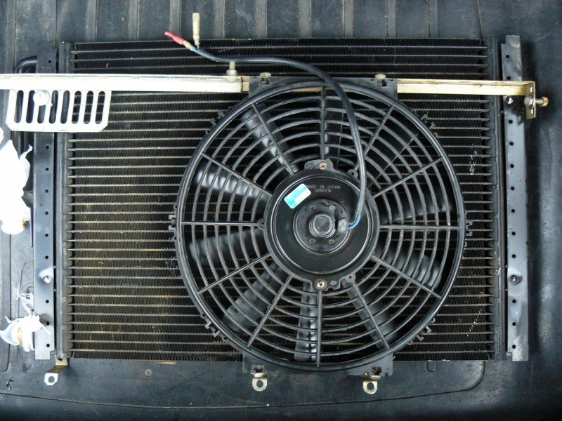 4. Конденсор кондиционера с электровентилятором. Устанавливались различные конденсоры и вентиляторы. Заводской конденсор для ГАЗ-31105 - 640х360х24 мм. Вентилятор - 14 дюймов (производители разные).