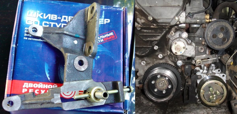 Надо добавить что даже на машинах без кондиционера некачественные шкивы разваливаются на высоких оборотах или протирают дыры в передней крышке двигателя вплоть до сквозных. Поэтому решение с заводским шкивом под два ремня (номер детали 406.1005050-60) является оптимальным и лучшим даже для машин без компрессора кондиционера.