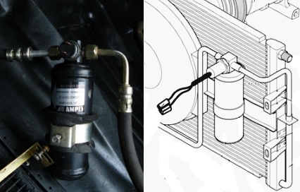 9. Осушитель с датчиком давления. Штатно - спереди слева перед конденсором. Поскольку расходник, производитель может быть разный.