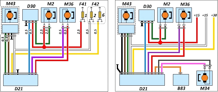 Была составлена официальная электрическая схема (линк). Похожая схема была выпущена в составе электросхем книги по ГАЗ-31105 издательством "За Рулем" (2011 г, линк на схему).
