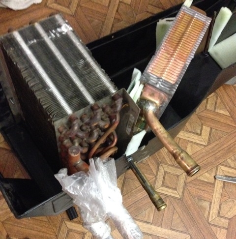 Результат - вплотную расположенные отопитель и испаритель взаимно обменивались теплым или холодным воздухом. Весь объем воздуха для отбора тепла проходил через радиатор отопителя. Краны - не самая сильная часть отопительной системы "Волг" - поэтому получение действительно охлажденного воздуха из такого корпуса является почти всегда проблемным. Рециркуляции - нет. Ручное регулирование температуры потока - под вопросом, поскольку заслонки перекочевали из штатного корпуса, тоже не удачного в плане их герметизации.