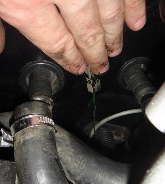 Когда заработал мой климат, специально наблюдал, откуда же бежит вода? По какой из двух трубок? Если вентилятор работает не шибко – течет из правой трубки, штатной, «в ногах». Если очень жарко и вентилятор работает выше среднего – капает и возле РЦС, из левой трубки.