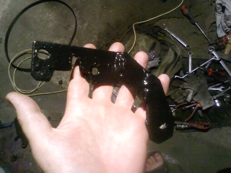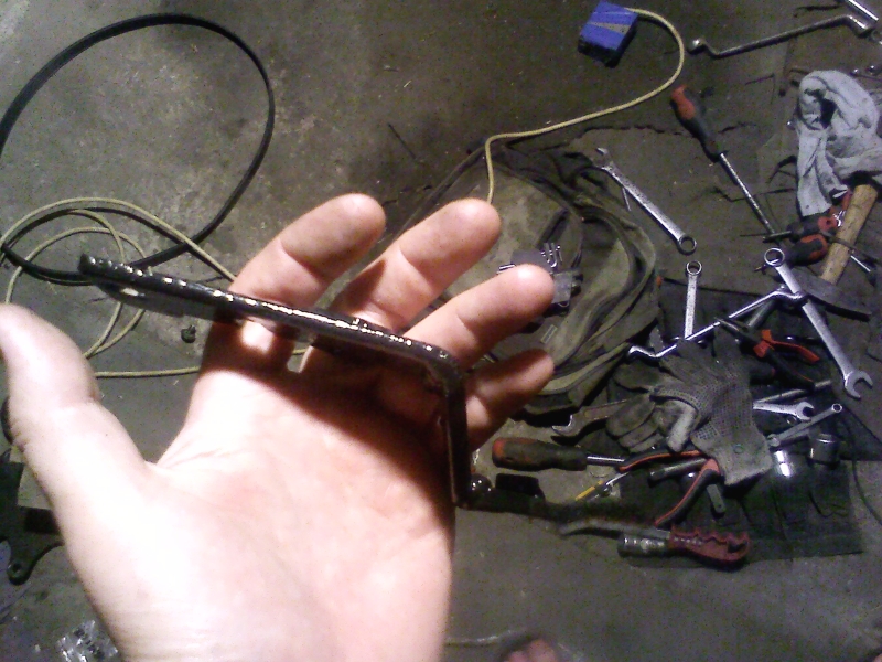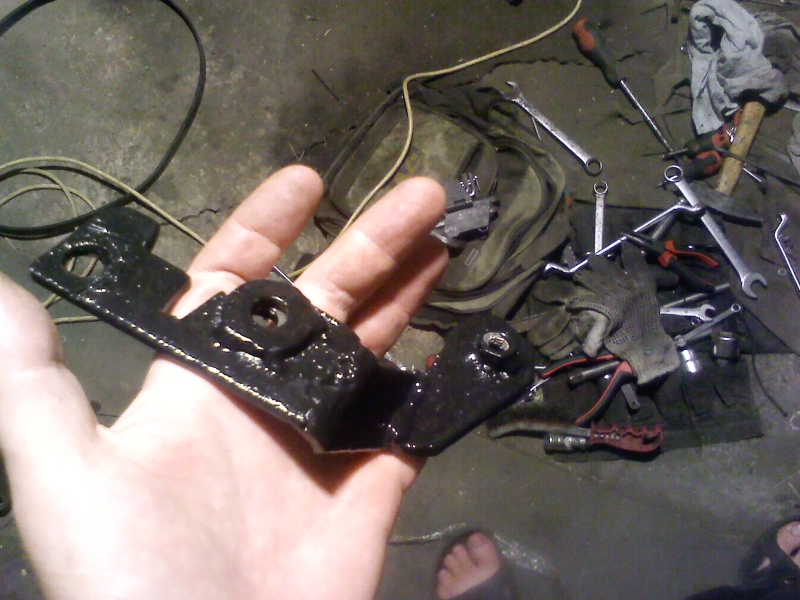 Недостающий кронштейн-планка получился не как на картинке. По прочности, после того как я его покрасил после обварки в тисках, думаю лучше оригинала. Теперь моя совесть спокойна. Навесное прикручено намертво.