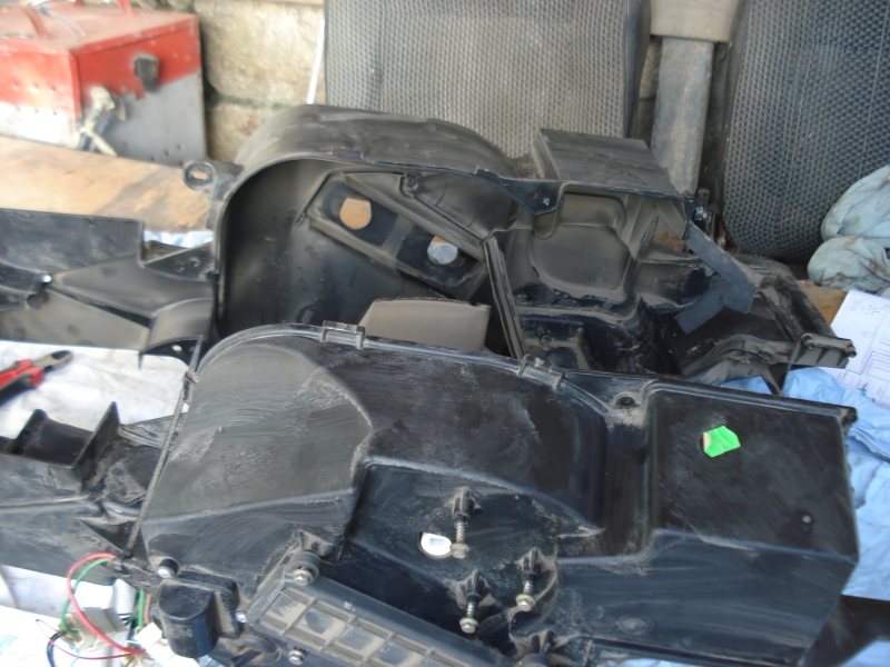 Всё вроде не плохо, исключая изуродованные корпус и заслонку подмешивания. Корпус я пилил в разных местах, борясь с технической совестью, а лишние и не лишние дыры заделывал самоклейкой. Тем не менее окончательная сборка корпуса на стандартные саморезы выпила килограмм крови. Самое паршивое – одна из трубок испарителя впивалась прямо в шахту воздухозабора кузова. Мне уже было всё равно после стольких вмешательств в оригинал. Я готов был попилить и шахту с кузовом. Тем не менее, примерка показала, что отопитель становится сильно впритык и кузов строгать не надо. Чтобы ничего не упиралось точно, я наклеил много слоев изолятора между трубкой испарителя и шахтой - и всё встало.