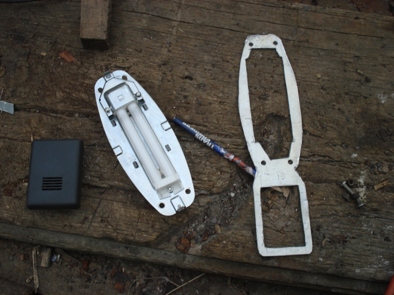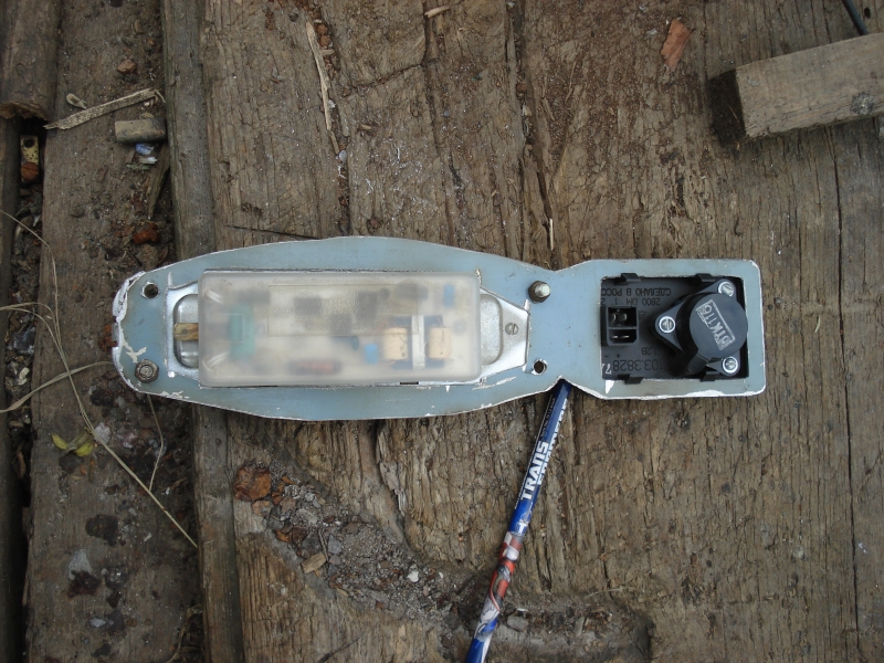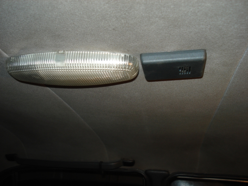 Блок измерения температуры надо приспособить на потолок. Из-за дуг крыши сделать это получится перед салонным плафоном, а не за ним. Для крепления блока я изготовил кронштейн из алюминия (кстати, с алюминием работать тяжелее чем со сталью, как мне показалось). В задней части кронштейн крепится на те-же саморезы что и плафон, а передняя часть держит блок измерения температуры, который вставляется в нее на защелках. Всё по месту. Важно не сломать защелки корпуса. Они прижимают обивку потолка, которая ими же и удерживается. Дыру в потолке придется прорезать.