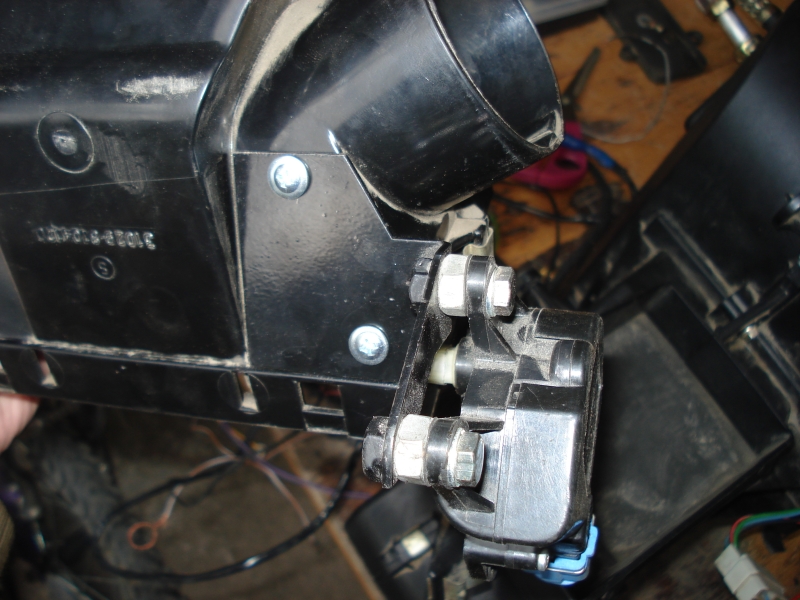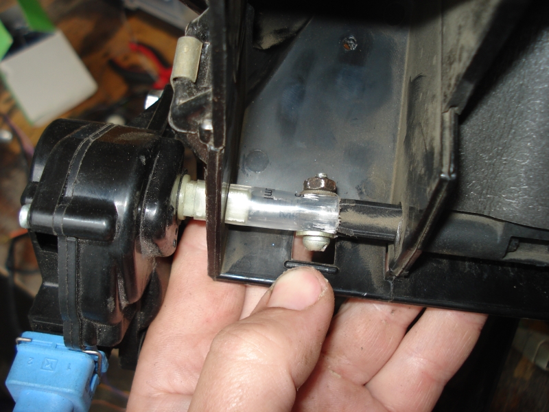 Заслонка «верх-низ» оснащается приводом с обратной связью. Может калиброваться процент открытия. Т.е. при работе система климата может ее открывать на разные углы. Для соединения с сервоприводом также была отпилена часть рычага механики, обточена и соединена с приводом при помощи отрезанной части шприца «на горячую».