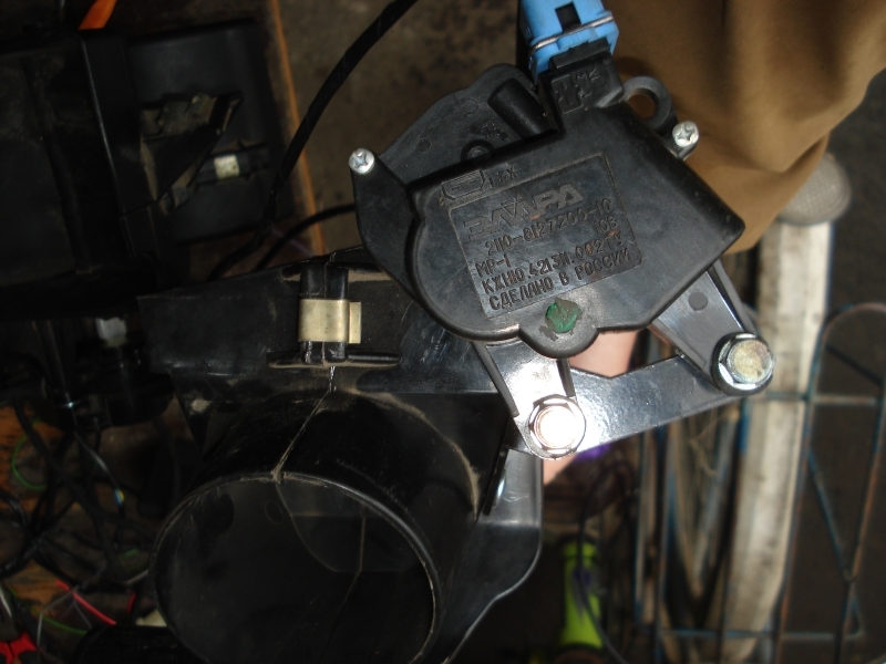 С заслонками проблем не было. В дорестайлинговом корпусе всего один сервопривод на заслонку подмешивания, а остальное – механика. Как я говорил, три сервопривода с маркировкой «Элара» 2110-8127200-10 КЖНЮ.421311.002ТУ я содрал с корпуса «Элинж». Два простых и один с обратной связью. Корпуса – одинаковые на всех. Волговский сервопривод заслонки подмешивания, неизвестного мне завода, имеет маркировку КФВШ.421311.003ТУ с порядковым номером, написанным от руки. Оси приводов имеют для ориентации скошенный угол, который указывает на насенные на корпусе привода значки типа "закрыто-открыто". Перепутать в каком положении механизм - невозможно.