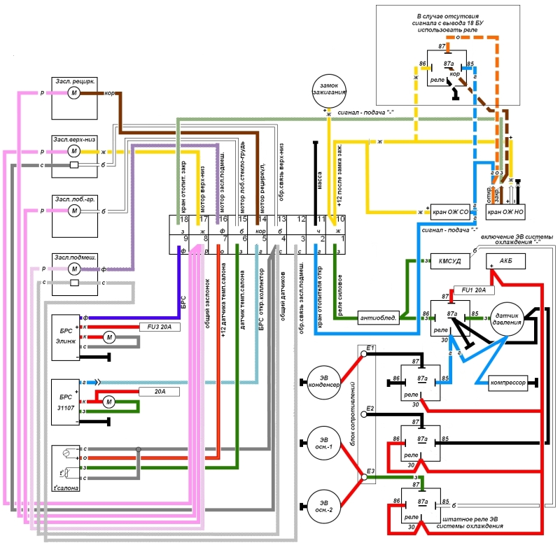 Естественно, всё что касалось силовой части вентиляторов подключалось напрямую к АКБ, без учета зажигания. Охлаждение и давление – важные вещи. Регулировать их надо без оглядки на работу двигателя.