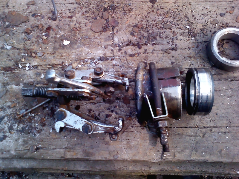 Начал с самого тяжелого, на мой взгляд – с замены однорядного шкива на двухрядный. Справился за два дня без разбора двигателя. Был сделан пропил на втулке, за который зацепился цанговый захват. Цанга зажималась хомутом. Втулка с цангой стягивались съемником. Подробнее здесь (линк).