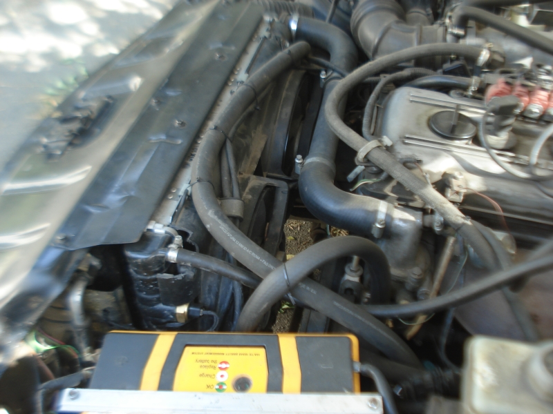 Два вентилятора от Ауди на диффузоре встали вместо обычного калужского на мой радиатор почти нормально. Снизу диффузор был обрезан по клапаны, сверху засверлен кое-где. Я не стал делать переходных пластин. Внизу диффузор прихватился одной гайкой на штатную шпильку, вверху, через удлинительные высокие гайки-муфты на штатные шпильки – болтами с шайбами в трех точках. На эти же точки были повешены кронштейны проводки генератора и стартера, к ним же принайтованы фреоновые магистрали. На диффузоре, по месту, были расширены проемы под волговские патрубки и датчики. Щели между радиатором и диффузором получились меньше миллиметра вверху и с боков – уплотнять не надо.
