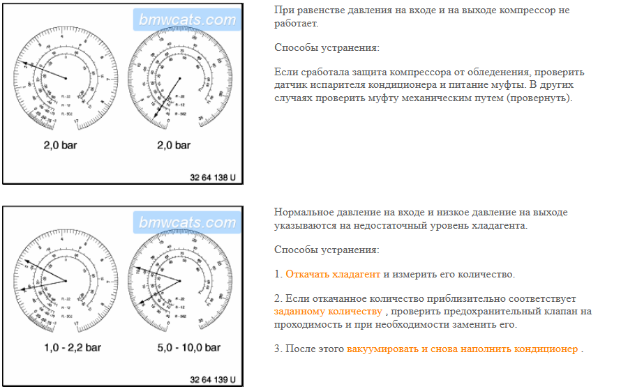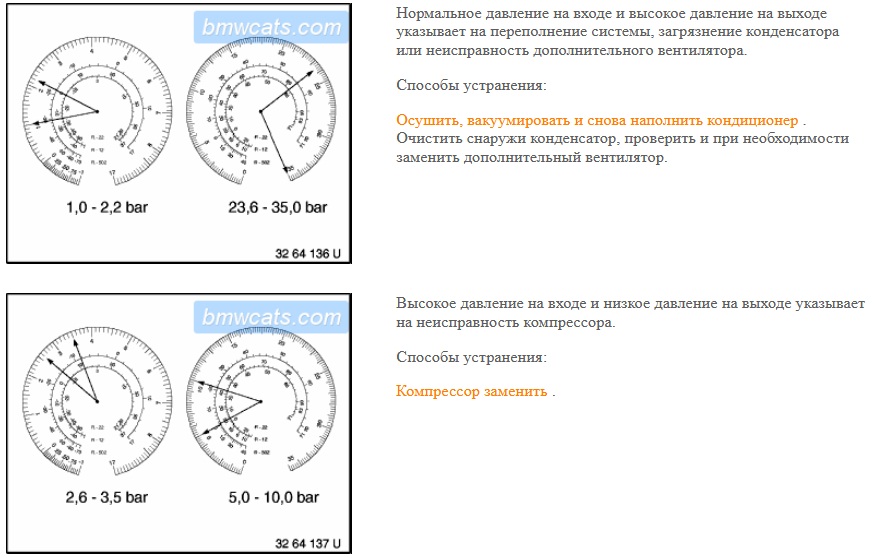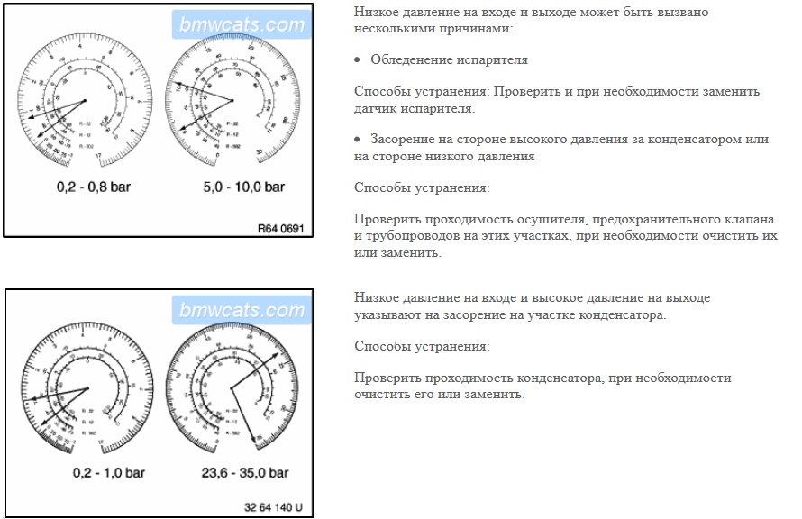 Используя данный метод мы можем диагностировать следующие проблемы с системой кондиционирования: