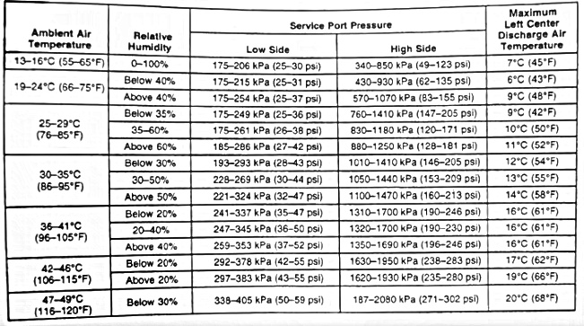 Опущены процедуры для т.н. "быстрой дозаправки". Нет ничего хитрого, чтобы подсоединить баллон с хладоном к порту НД и дождаться, пока на работающем двигателе давление в системе придет в норму, отмеченную на шкале манометра баллона либо сориентировавшись по таблице зависимости давление-температура (будет дана ниже). Описывать тут, собственно, нечего. При небольших утечках такие средства возврата работоспособности вполне эффективны.