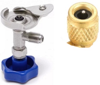 По поводу арматуры: то, что прилагается в моем среднем комплекте с обычным манометрическим коллектором как клапан для баллонов с хладоном - можно выбрасывать. Во первых шаг резьбы на китайских одноразовых баллонах бывает минимум четырех разных размеров. Во вторых, клапан "под прокол". Суть - в баллоне пробивается дыра иглой. Как только мы закончили заправку, будь там хоть полный неиспользованный баллон - емкость можно выбрасывать, поскольку хладон в течении суток всё равно улетучится.