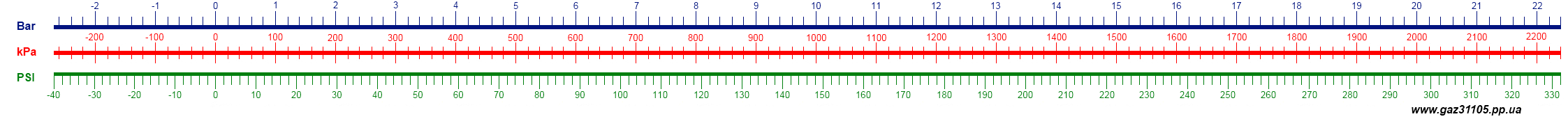 Может присутствовать шкала "для вакуума". Т.е. при вакуумировании системы стрелка указателя показывает давление "ниже нуля". Термин - "остаточное давление". Единицы измерения - те-же Bar, Pa, atm. Могут быть миллиметры ртутного столба ("mm Hg" или "Torr") и дюймы ртутного столба ("in Hg"). На моей шкале - in Hg.