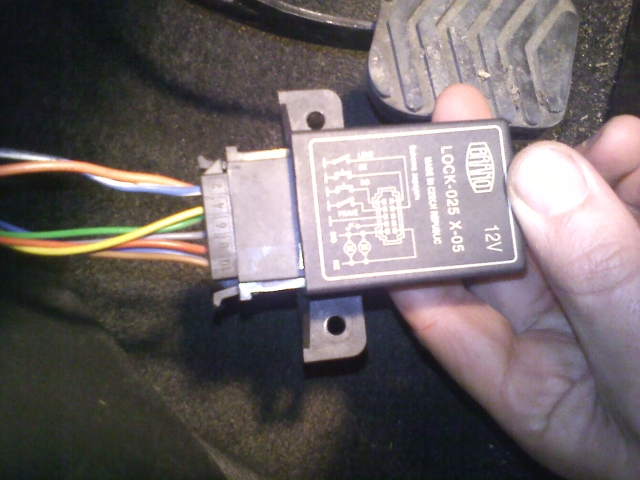 Блок управления "центральным замком" "Brano" LOCK-025 X-05 расположен в салоне, под панелью приборов, чуть ниже левого нижнего угла ветрового стекла. В состав блока входит двухкатушечное реле TYCO V23086-C2001-A403.