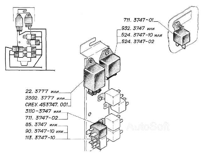 Реле 495.3747 расположено на переключателе поворотов. Контакты обозначаются 31, 49, 49а. Реле ставилось на многие российские автомобили.