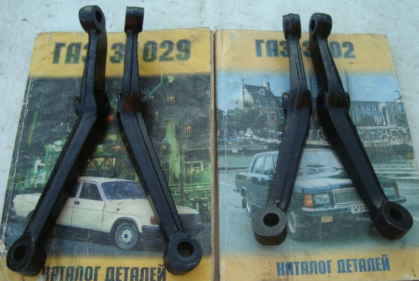 В обзор не включены трапеции автомобилей "Волга" с двигателями V8. Детали там сплошь оригинальные на каждую модель (за исключением общих для "Волг" рулевых наконечников). Каталогов деталей на такие машины я не имею, у меня есть только их "РЭ".