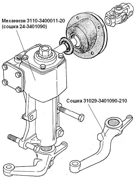 - рулевой механизм (заводской индекс детали - сам механизм, шарнир и сошка);