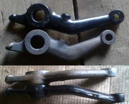 Поворотные рычаги для подвески на шаровых опорах визуально отличаются от соответствующих рычагов шкворневой подвески в первую очередь ограничительным выступом (упирается в площадку нижней шаровой для ограничения выворота). Для "шаровой" подвески ГУР общая длина рычага - 23,5 см, для безГУР - 27 см.