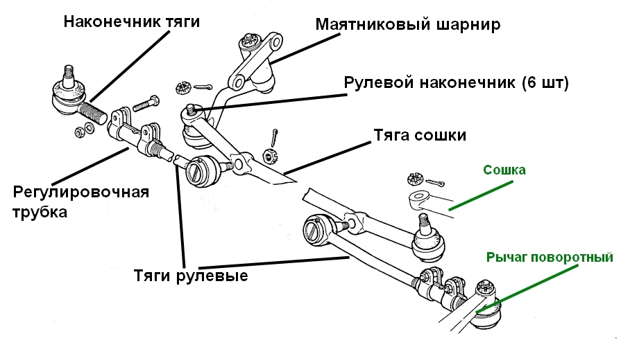 | Тяга сошки | Тяга рулевая | Нако- нечник тяги |